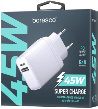 Сетевое зарядное устройство BORASCO USB + USB type-C, 45Вт,