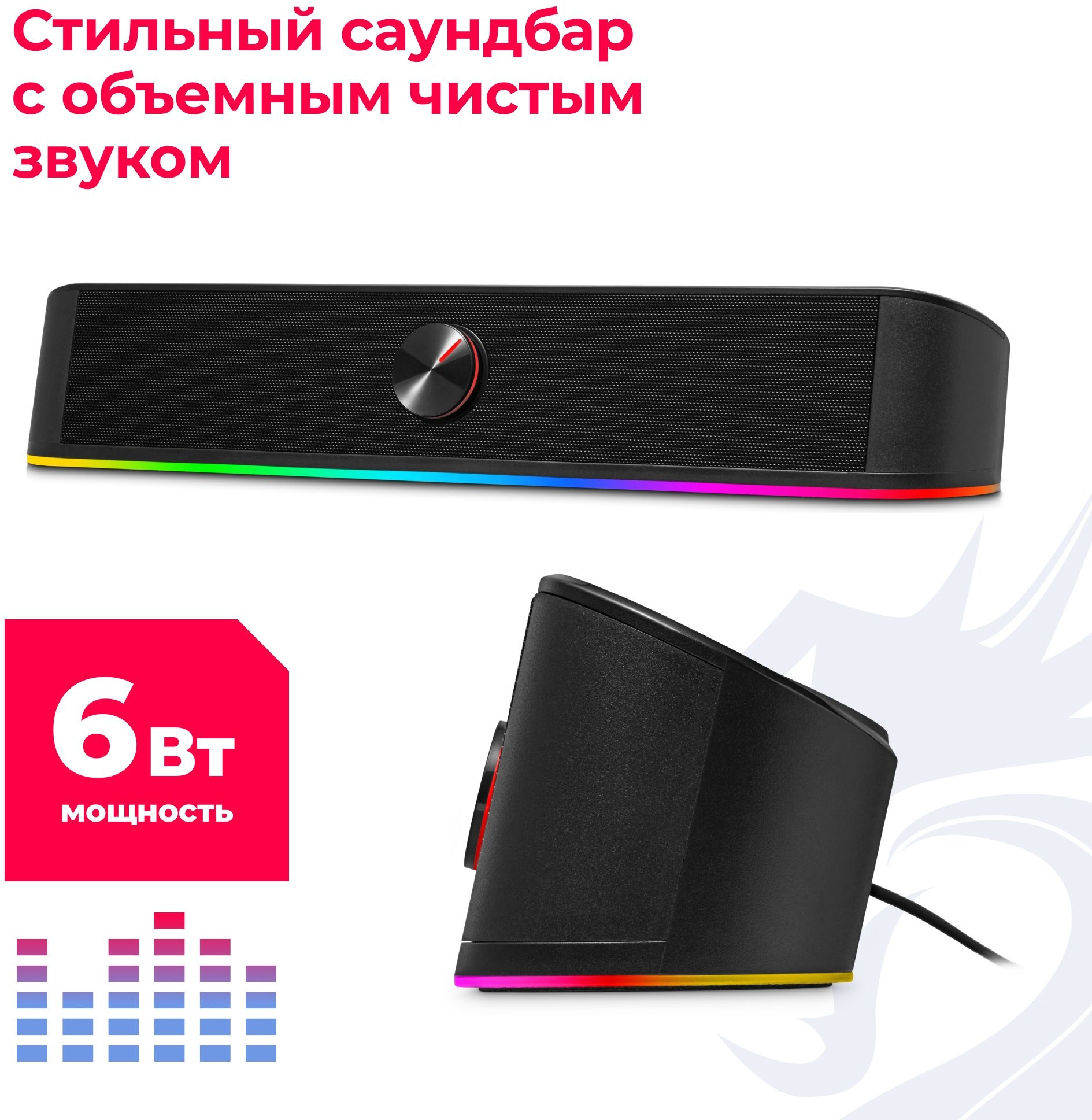 | Особенности2 | Глубокий мощный звук в компактном дизайне и красивая светодиодная подсветка! Экономит место и украшает ваше рабочее пространство. Выбор режима подсветки осуществляется касанием логотипа Redragon. | |
