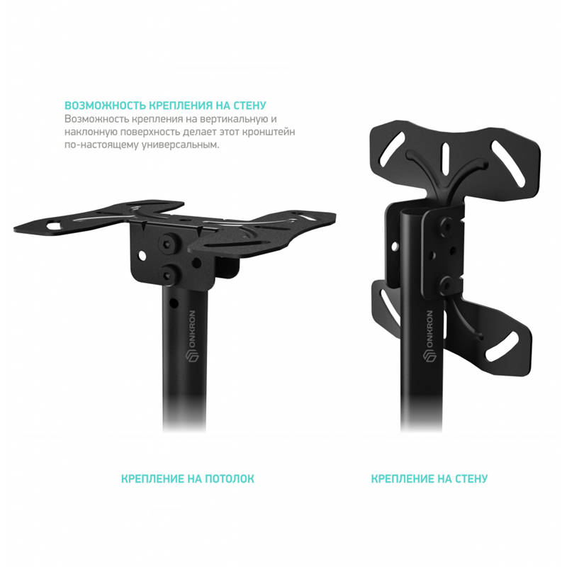 Потолочный кронштейн для телевизора ONKRON N2L предназначен для панелей с диагональю экрана от 32 до 80 дюймов (81,28 – 203,2 см).