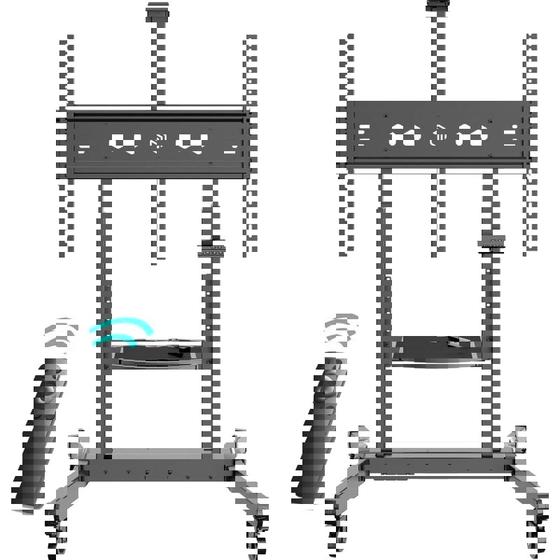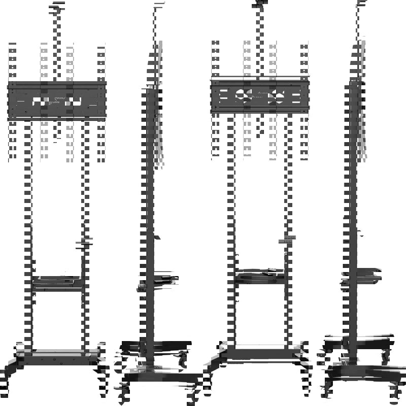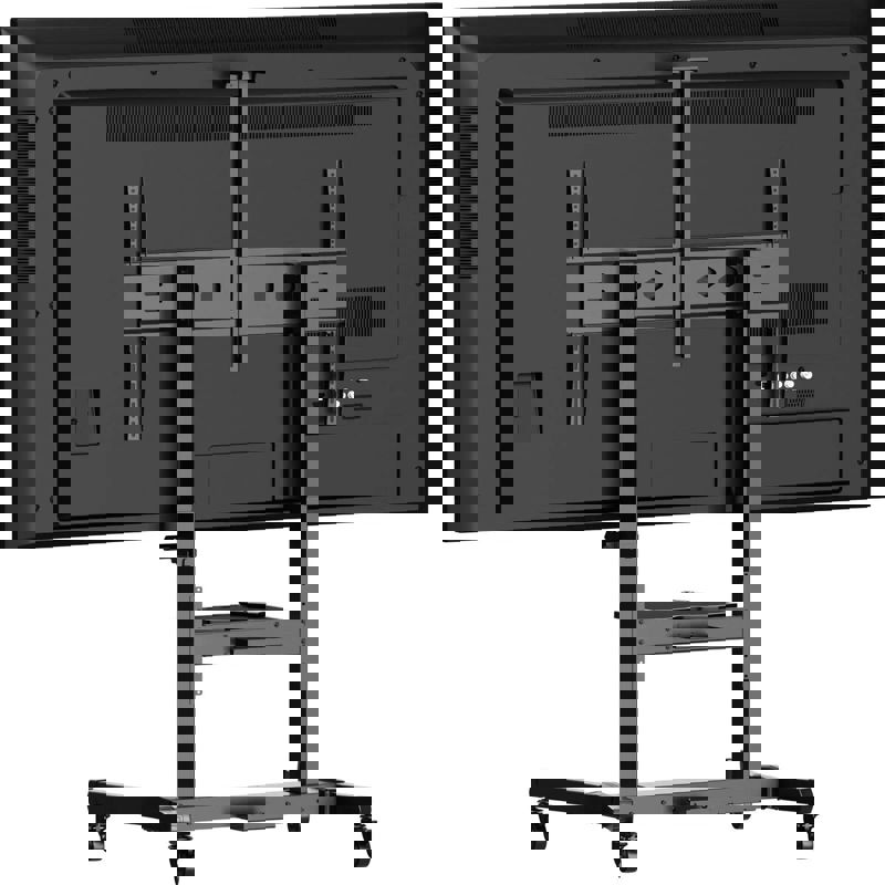 Мобильная стойка для больших ТВ и интерактивных панелей с полкой для дополнительной техники.