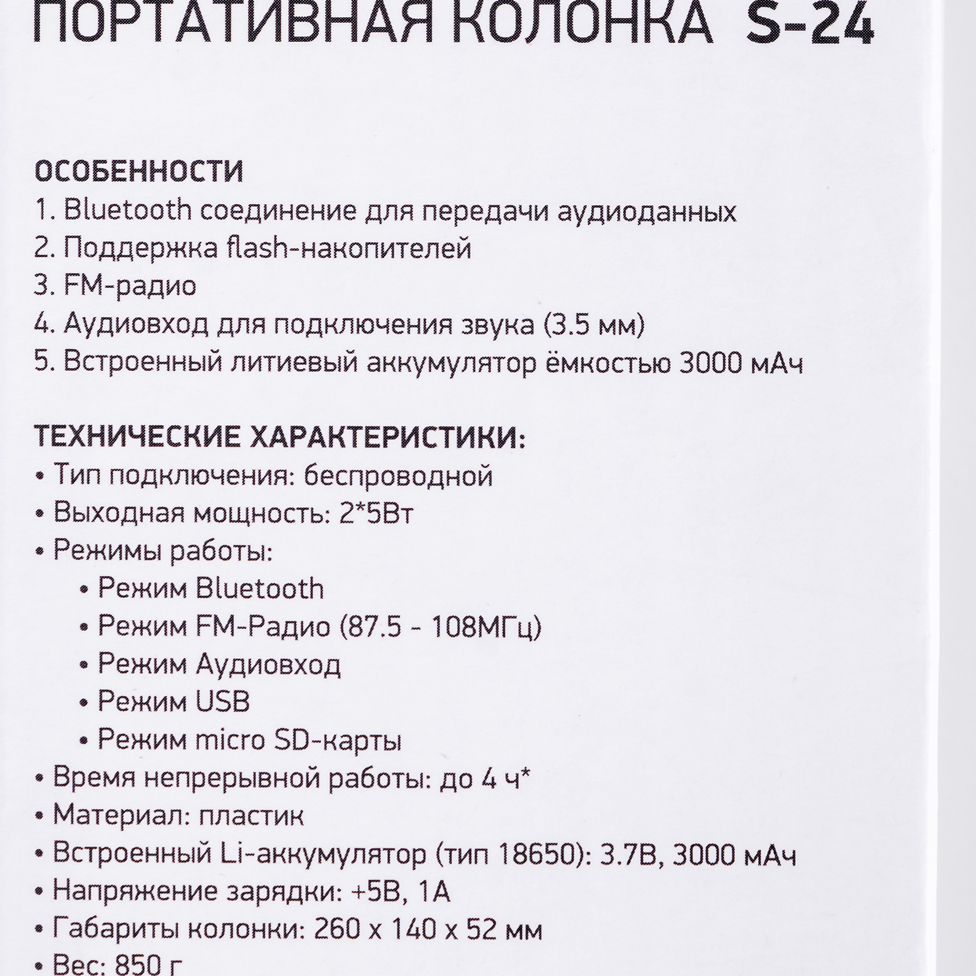 | Комплектация | Колонка, micro USB-кабель (для зарядки), ремешок для переноски, руководство пользователя, гарантийный талон. | |