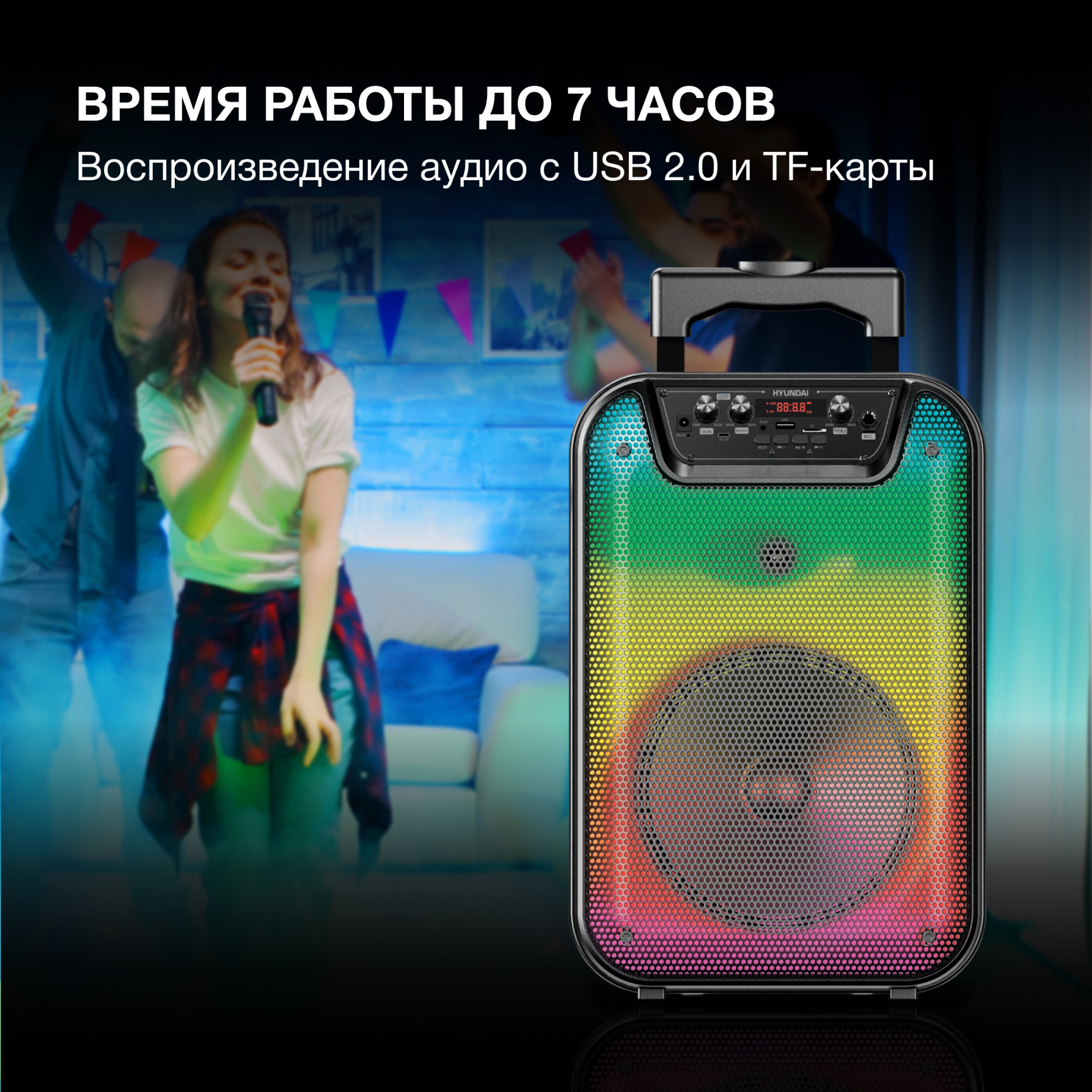 | Дополнительно в комплекте | USB кабель, AUX кабель, проводной микрофон, пульт, адаптер | |