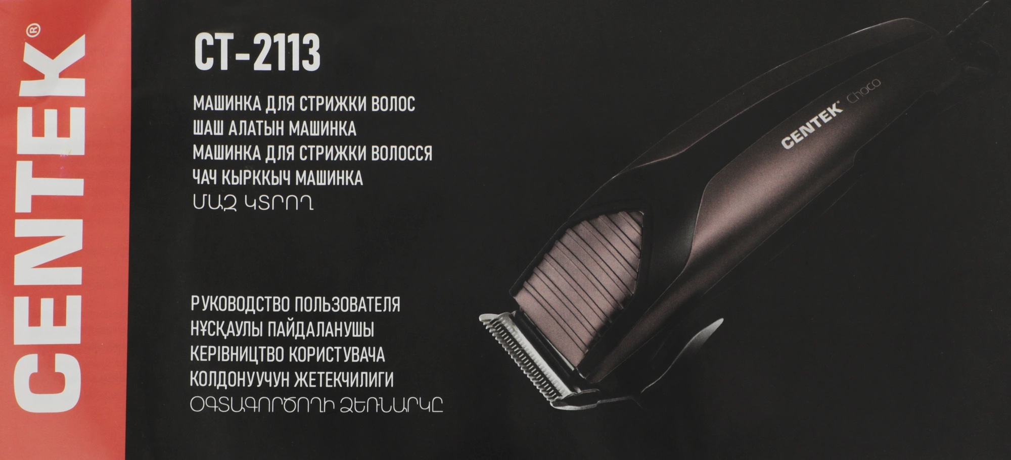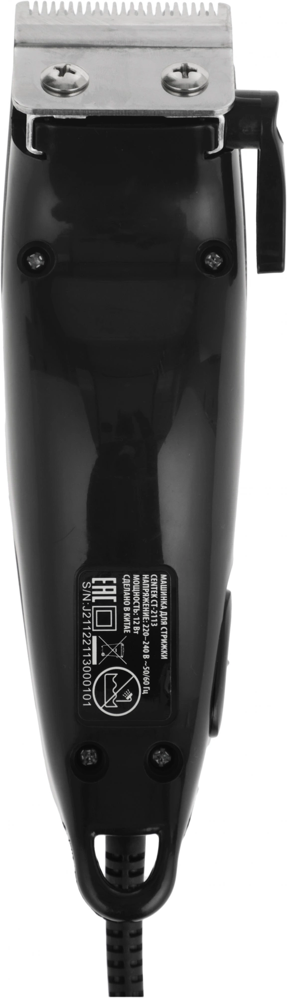 Машинка для стрижки Centek CT-2113 поможет сделать как простую, так и индивидуальную модельную стрижку в домашних условиях. Регулятор выдвижения насадки-расчески позволяет выбрать необходимую длину волос во время стрижки. Режущие лезвия из высококачественной нержавеющей стали идеальной заточки надолго останутся острыми, а эргономичный корпус и удобная кнопка включения/выключения машинки обеспечат максимальное удобство при ее использовании. Набор аксессуаров: 4 насадки для стрижки (3, 6, 9, 12 мм), щеточка для чистки лезвий, расческа, ножницы, масло и защитный колпачок.