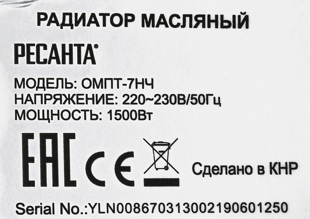 | Тип | Масляный радиатор | |