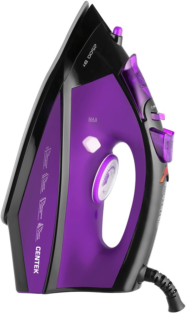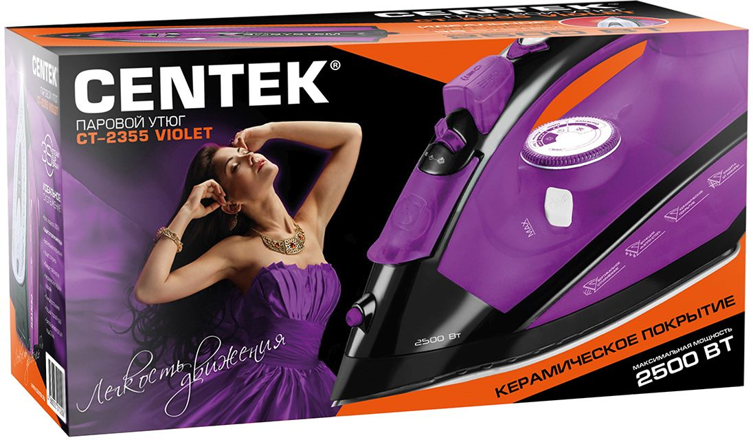 Утюг Centek CT-2355 обеспечивает простое и эффективное глажение: большое количество пара разглаживает жесткие складки, подошва с керамическим покрытием обеспечивает превосходное скольжение на любых тканях, а функция очистки от накипи повышает надежность прибора. Эффективное разглаживание складок благодаря мощному паровому удару. С утюгом Centek CT-2355 становится не только невероятно легко гладить одежду, но также не нужно волноваться, что её можно испортить или перегреть. Процесс глажки одежды становится невероятно простым и безопасным. Благодаря эргономично сделанной удобной ручке утюга вы меньше устанете. Узкий носик утюга прекрасно справится с разглаживанием труднодоступных мест возле пуговиц и мелких деталей. А его привлекательный дизайн поднимет вам настроение.