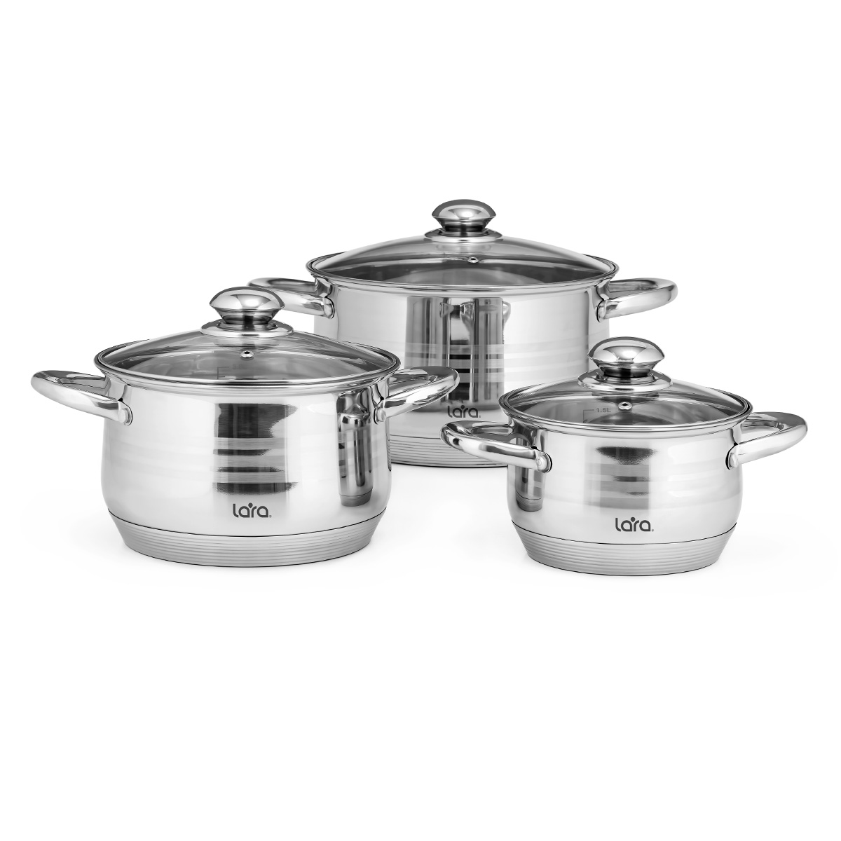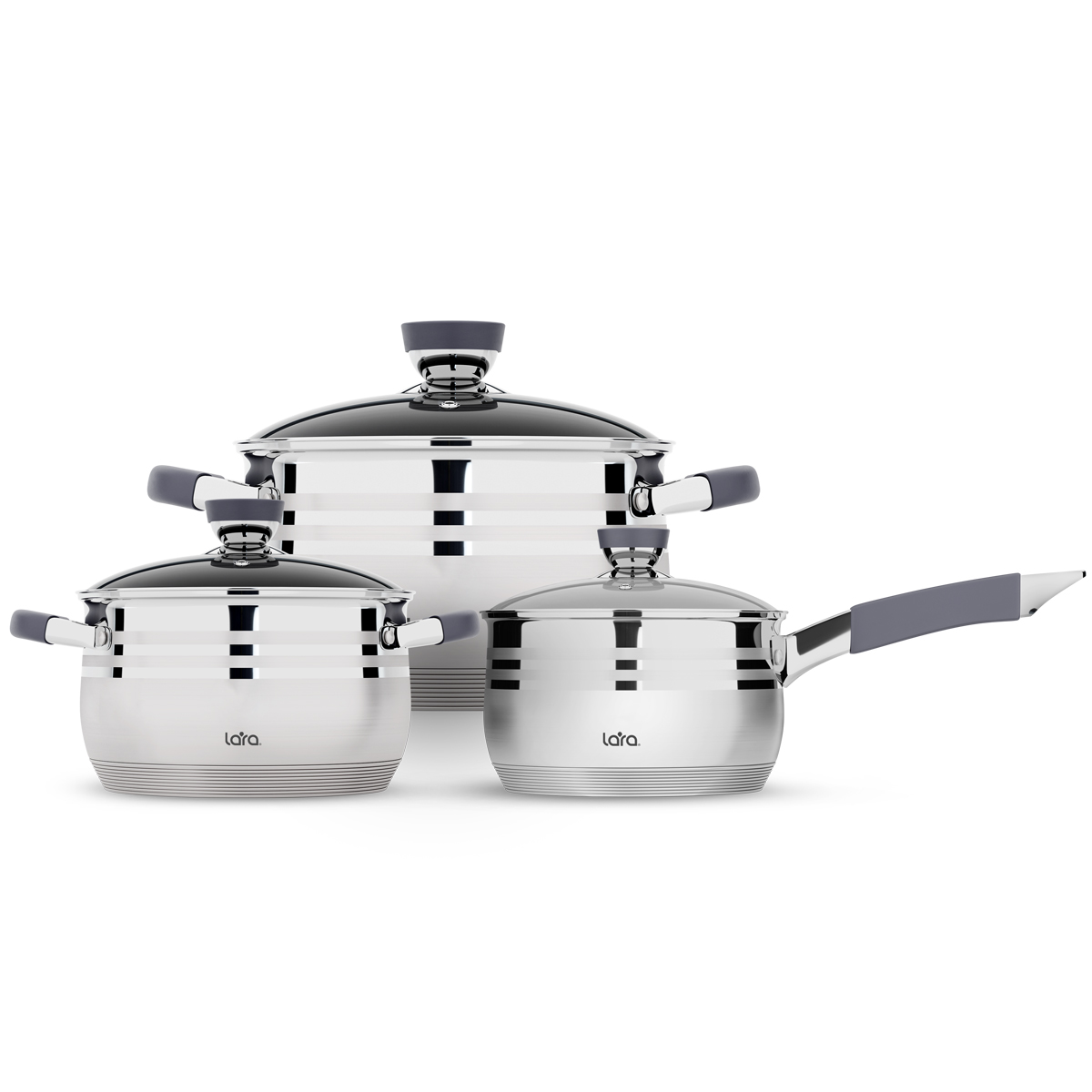 LR02-121 Набор посуды LARA серия MERCURY 16/18/22см (2.1+2.9+4.9л) индукционное капс.