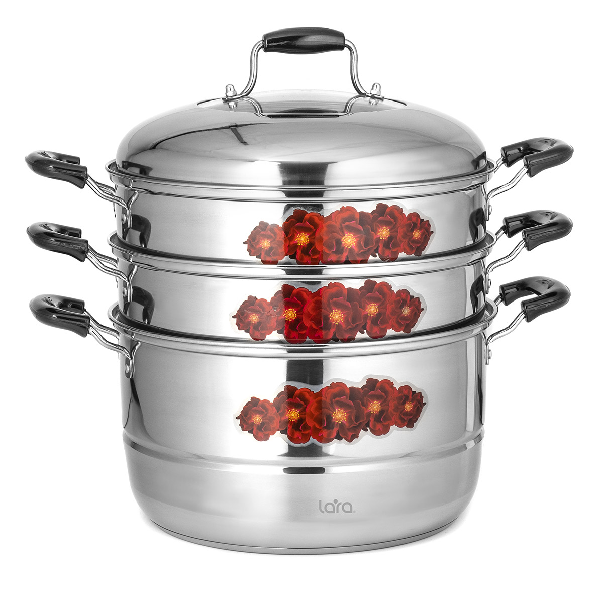 LR03-41 Мантоварка-пароварка LARA (нерж) 30x32см, 13л, 3 СЕКЦИИ + КРЫШКА