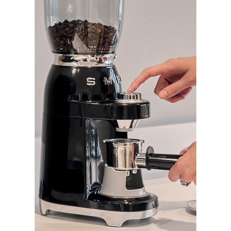 Удобный рычаг позволяет выбирать уровень помола простым и интуитивно понятным способом, имея на выбор до 30 различных уровней, что позволяет выбрать нужный помол для разных кофемашин и вкусов. С кофемолкой Smeg вы получите идеальный помол для эспрессо-машин, кофеварок мока, американских кофеварок и френч-прессов.