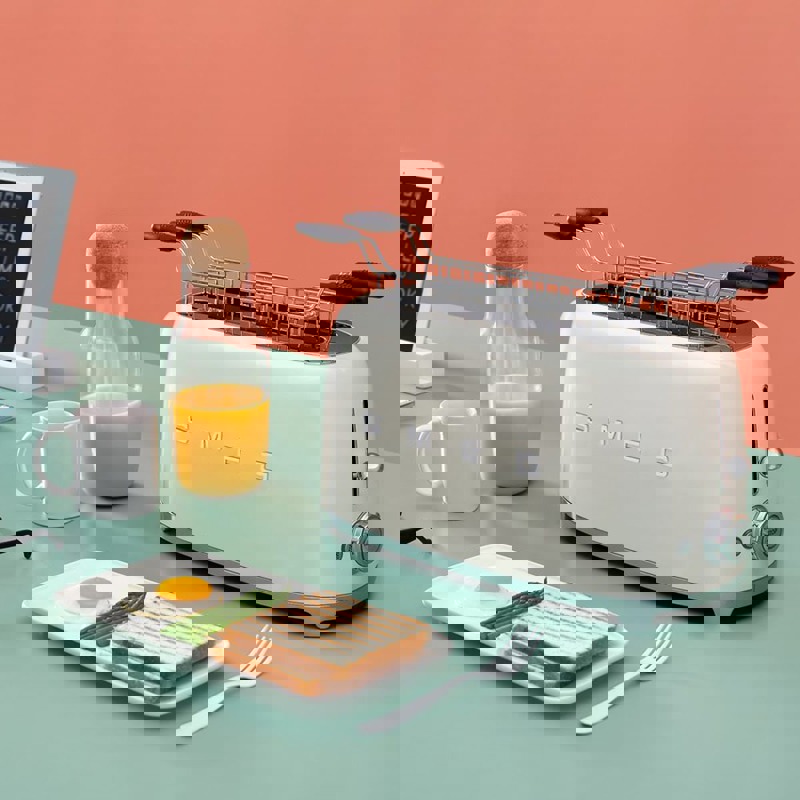 Тостер Smeg TSF02, в котором реализованы новейшие технологии тостов, является не только красивым, но и практичным устройством. Являетесь ли вы поклонником винтажного дизайна или просто ищете высококачественный тостер, TSF02 - идеальный выбор для вас. Улучшите свой опыт приготовления тостов и добавьте нотку ретро-стиля на свою кухню с помощью тостера Smeg TSF02.