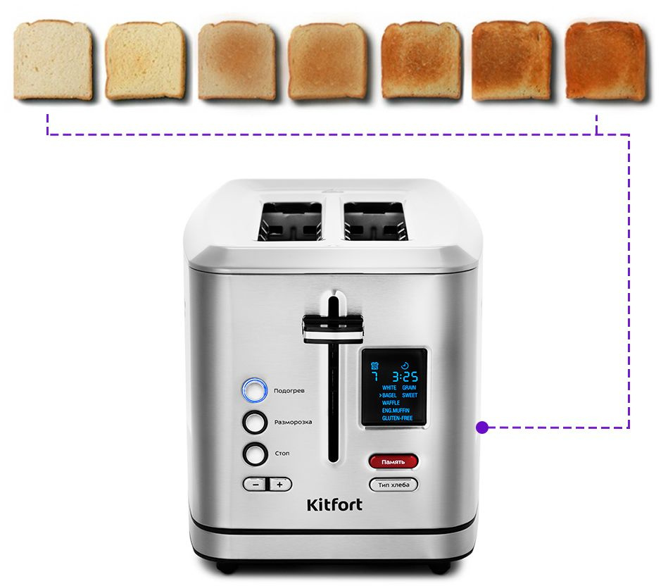 | Описание | Тостер Kitfort КТ-2049 создан для тех, кто любит полакомиться ароматным и хрустящим поджаренным хлебом. Особый вкус и цвет тостов получаются такими благодаря карамелизации сахара, содержащегося в муке, в процессе приготовления. | |