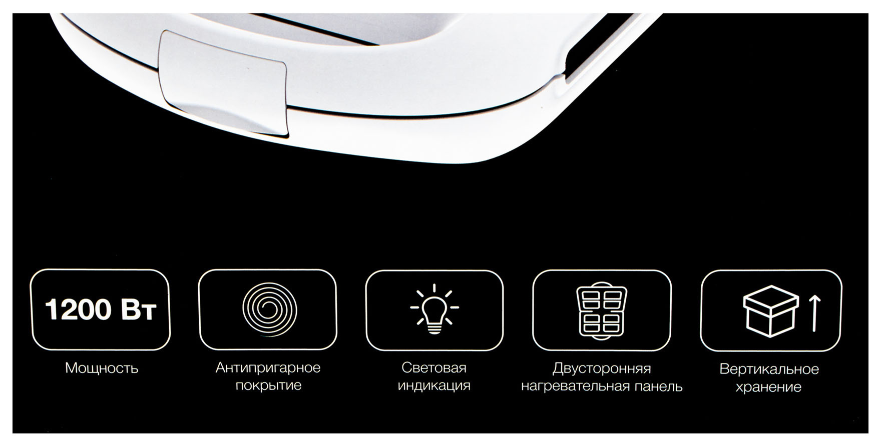 | Особенности | конструкция корпуса позволяет класть вафельницу на любую сторону | |
