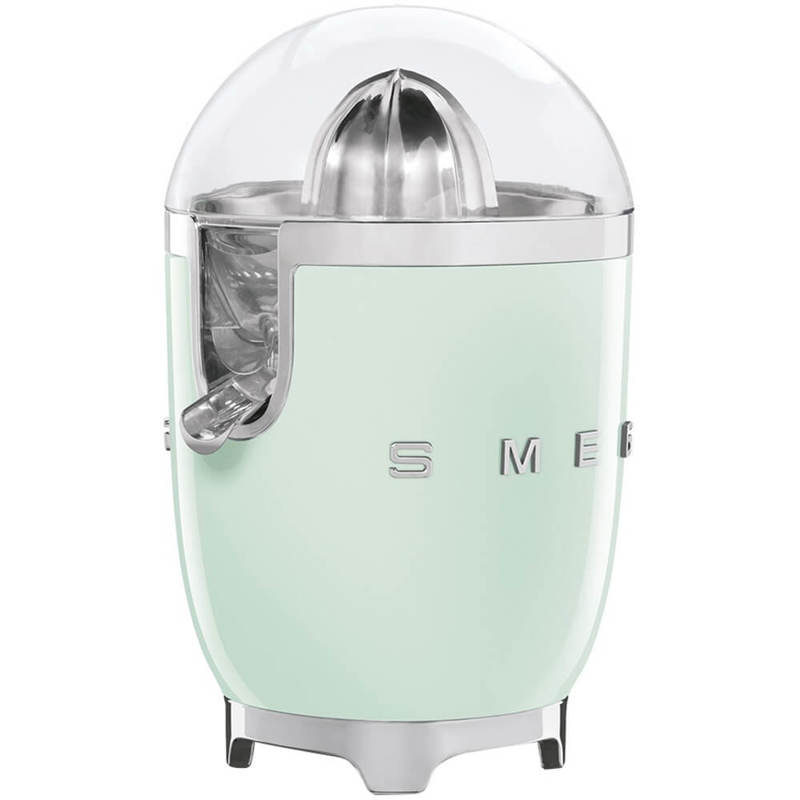 Соковыжималка для цитрусовых Smeg CJF11PGEU пастельного зеленого цвета отличается высокопрочным пластиковым корпусом и рабочей поверхностью из нержавеющей стали. Используемый материал не выделяет вредные вещества, не изменяет вкус и аромат продуктов. Модель с габаритами 28,1х18,9х22 см и весом 2,56 кг оснащена прорезиненными ножками для оптимальной устойчивости.