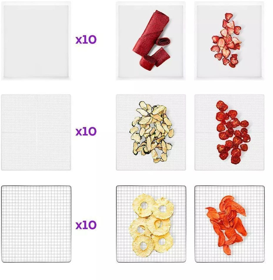 | Комплектация | 10 металлических поддонов; 10 сеток; 10 пластиковых поддонов | |