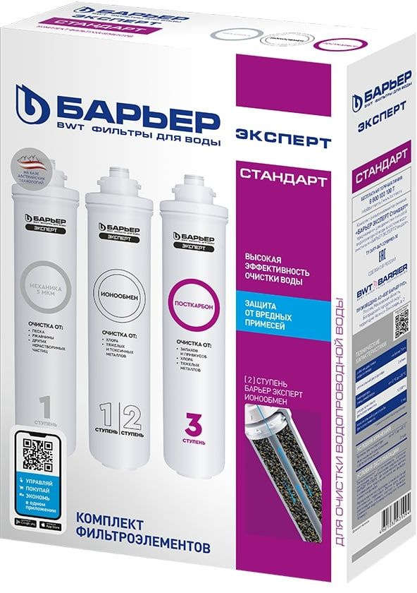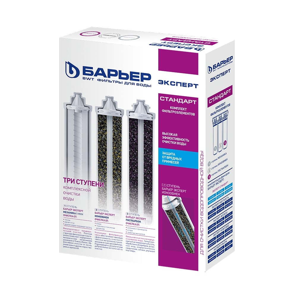 | Особенности | Фильтроэлемент "Механика" очищает воду от песка, ржавчины, окалины, механических частиц. "Ионообмен" очищает воду от меди, свинца, кадмия, других тяжелых и токсических металлов. "Посткарбон" очищает воду от ионов тяжелых и токсичных металлов, растворенного железа неприятных запахов. | |