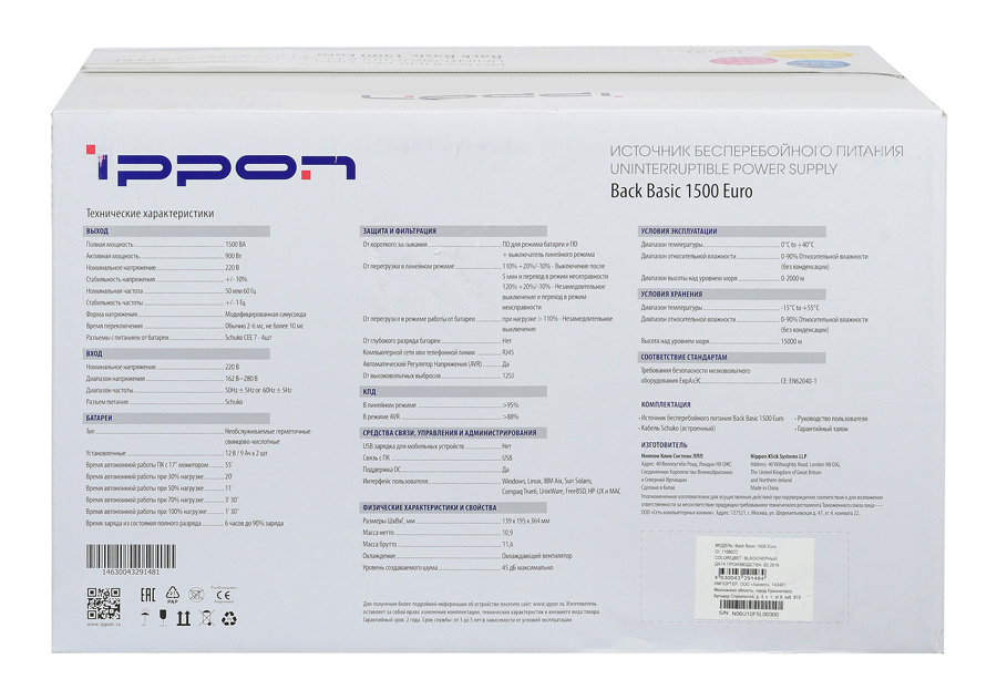 | Мощность (ВА) | 1500 | |