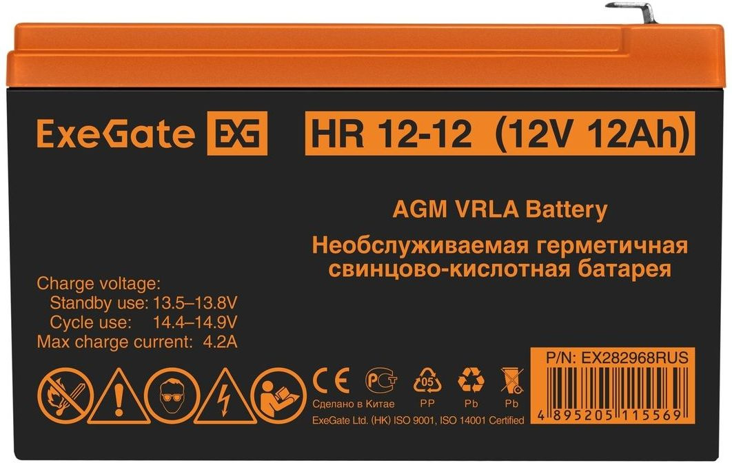 Описание Свинцово-кислотные необслуживаемые аккумуляторы ExeGate серии HR изготовлены по технологии AGM.