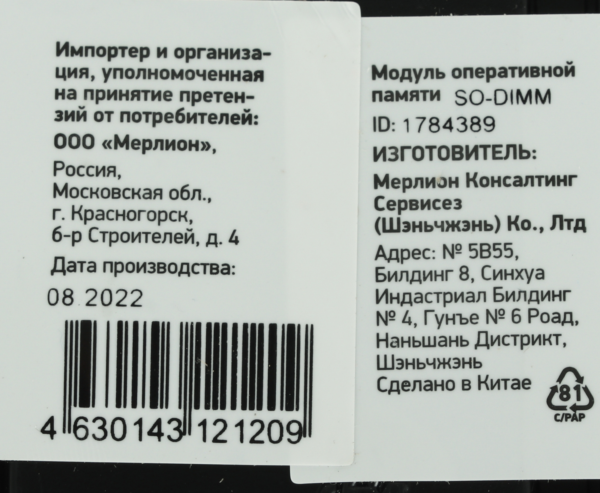 | Форм-фактор | SO-DIMM | |