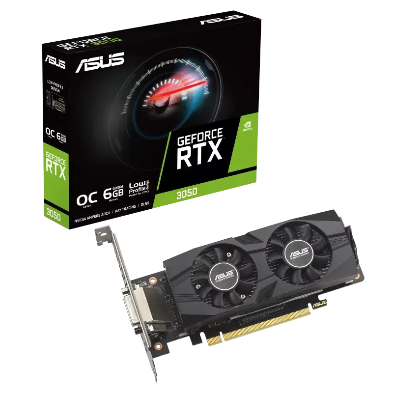 ASUS GeForce RTX 3050 LP BRK — низкопрофильная компактная видеокарта, обеспечивающая производительность при работе с несколькими мониторами.