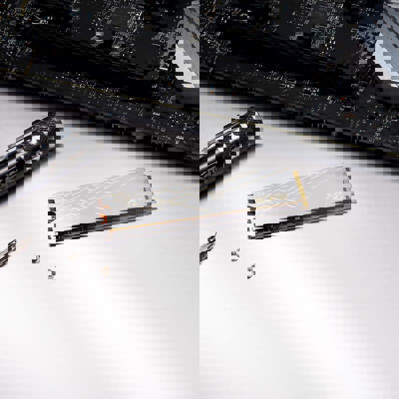 Накопитель оснащен радиатором, который обеспечивает эффективное охлаждение даже при высоких нагрузках. Это позволяет поддерживать стабильную работу устройства и предотвращает перегрев, что особенно важно для геймеров и профессионалов, работающих с ресурсоемкими приложениями.