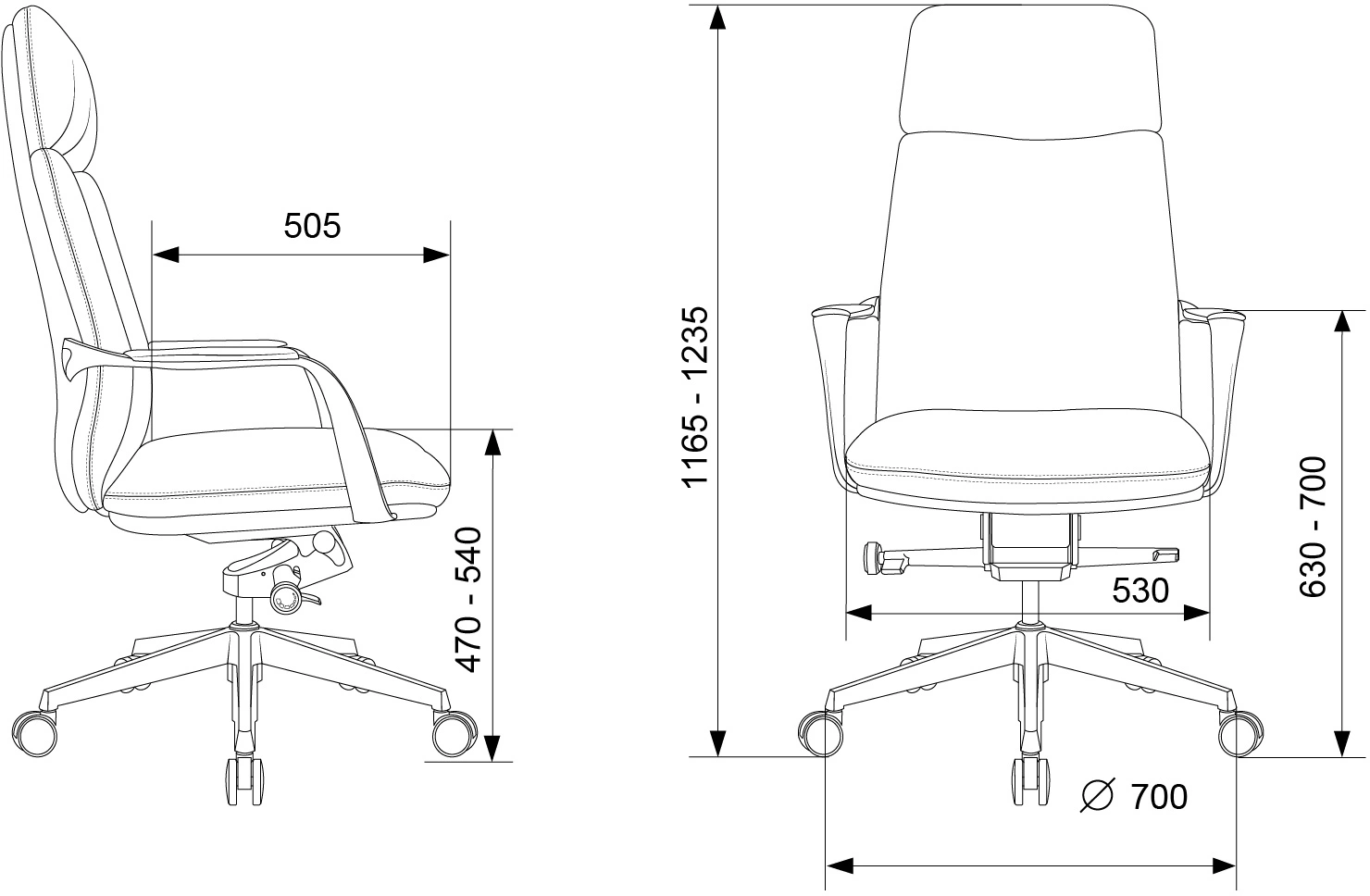 Высота с подлокотниками MIN 630