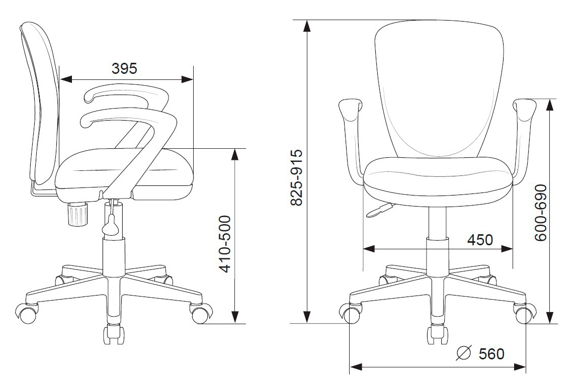 | Высота с подлокотниками MIN | 600 | |