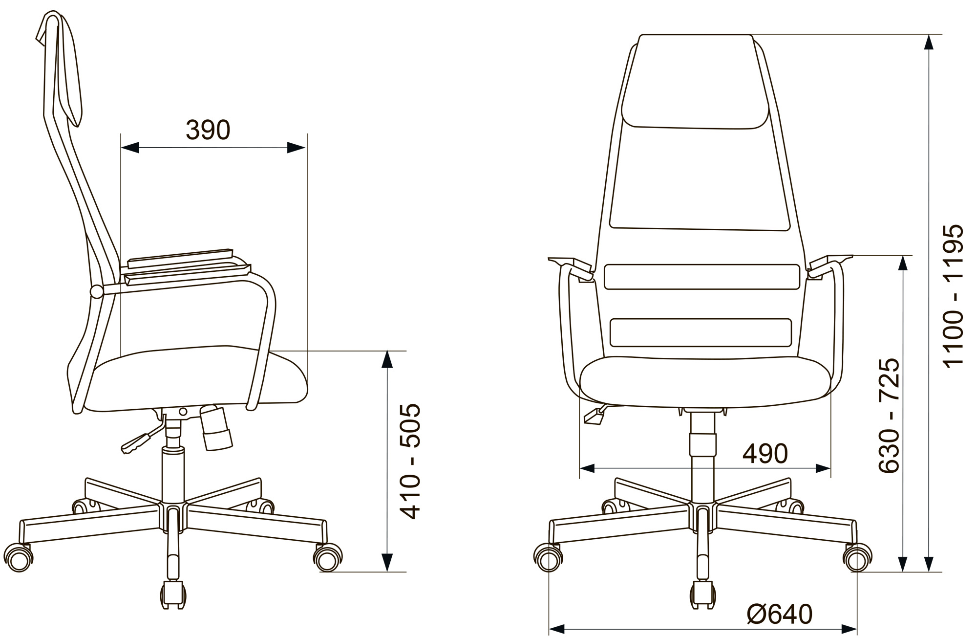 | Высота кресла MIN | 1100 | |