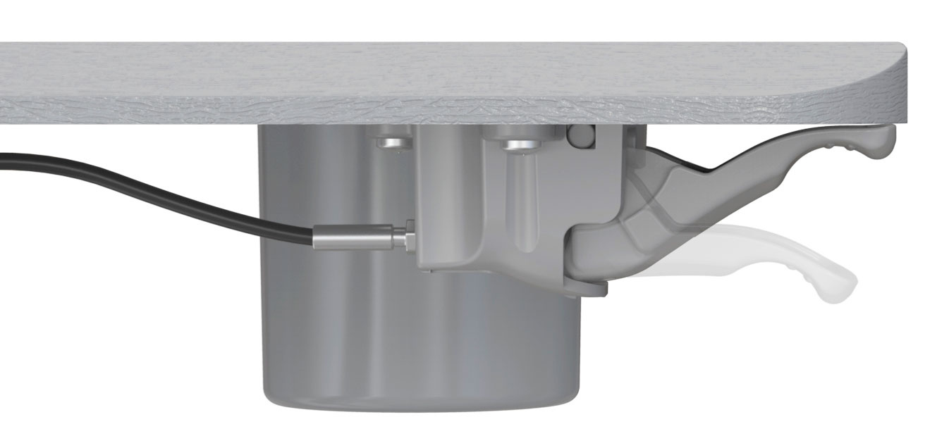 | Особенности | Подъемный механизм плавно опускает и поднимает столешницу, можно остановить в любом положении. Управление при помощи одного рычага. Наличие 4 колес обеспечивает маневренность, 2 колеса со стопором, для придания устойчивости. | |