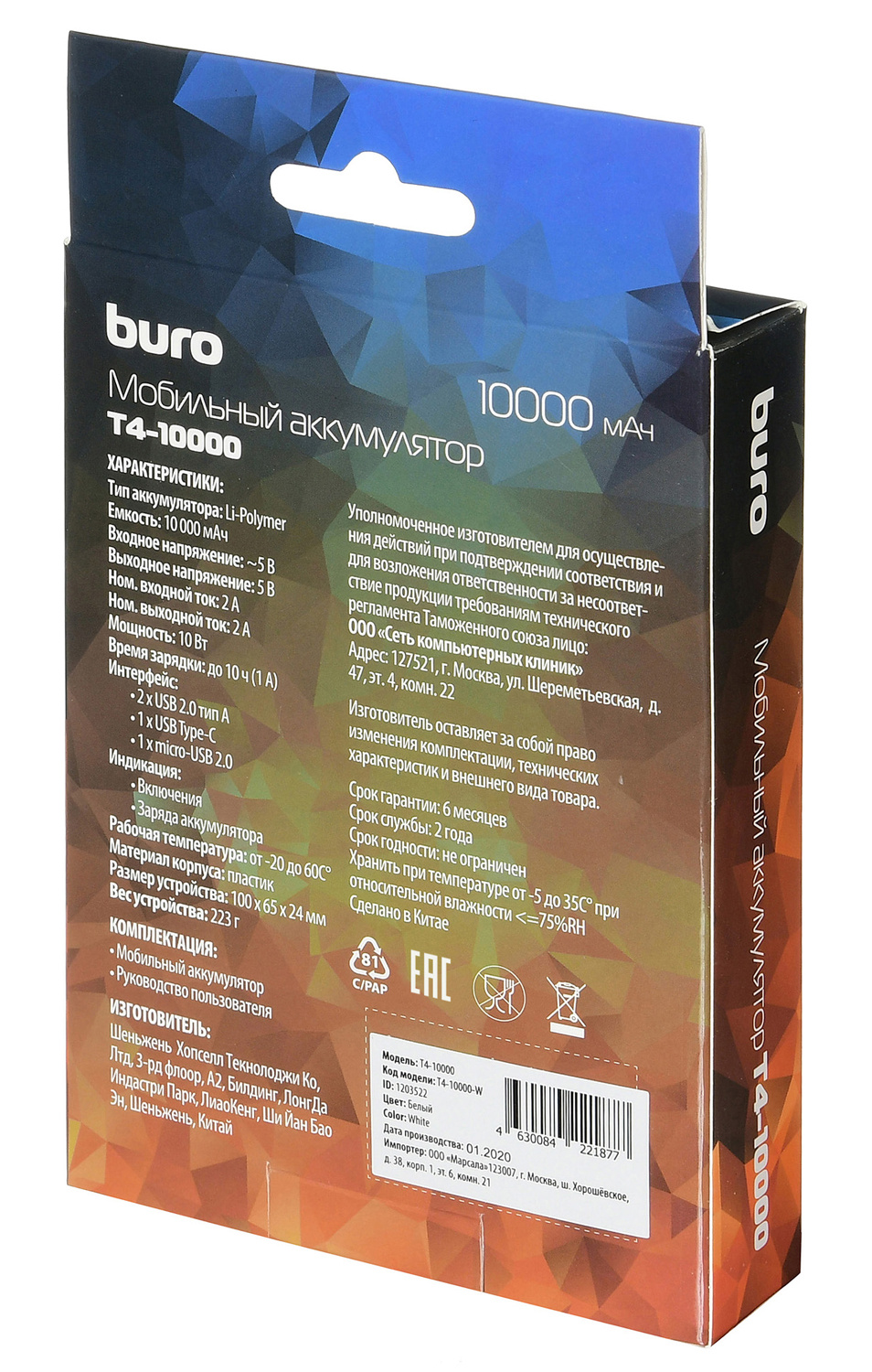 | Описание | Входы: micro-USB, USB-C; выходы: 2 х USB-A. Мощность 10.5 Вт | |