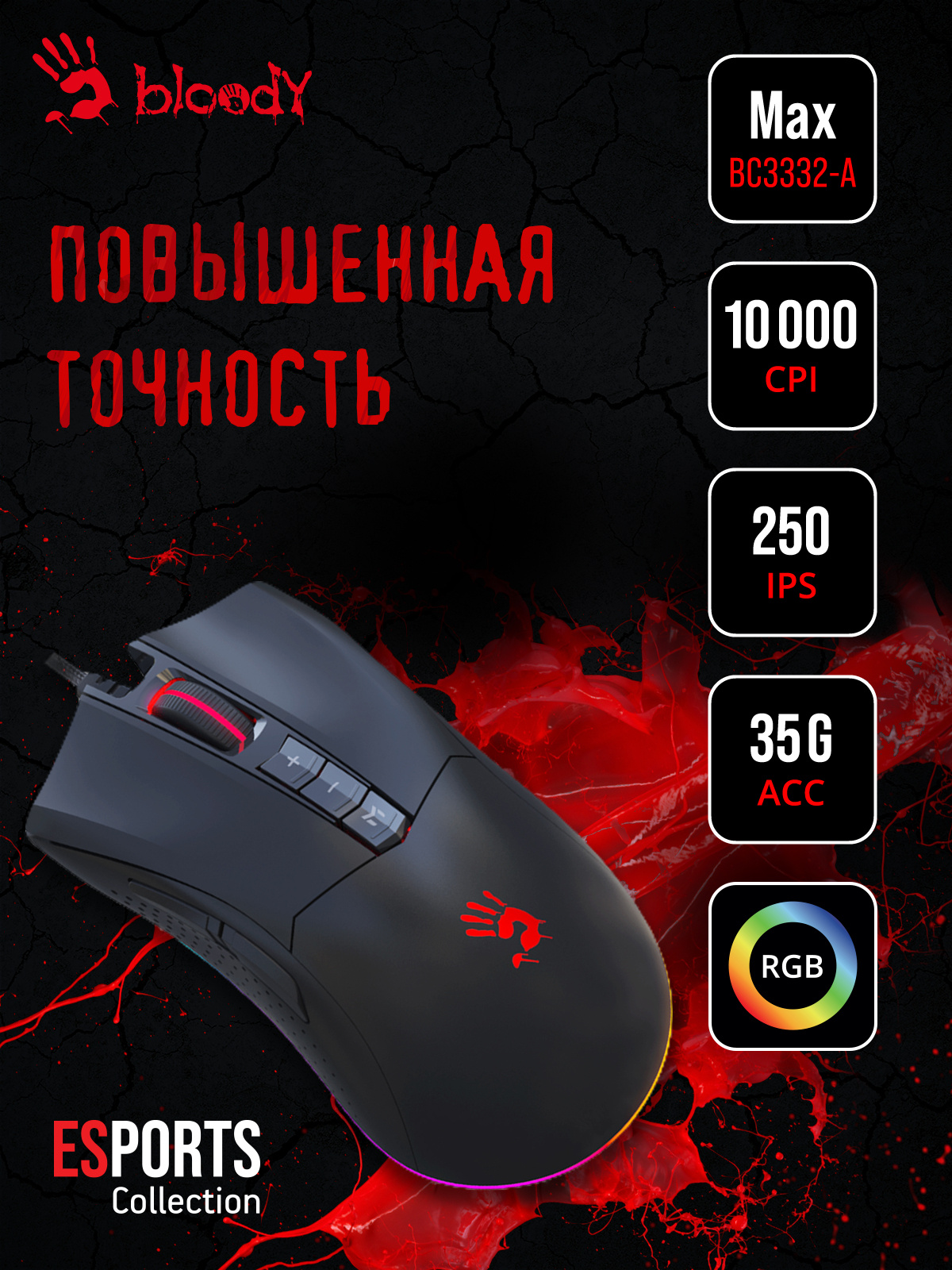 | Особенности | Игровой сенсор PixArt BC3332-A | |