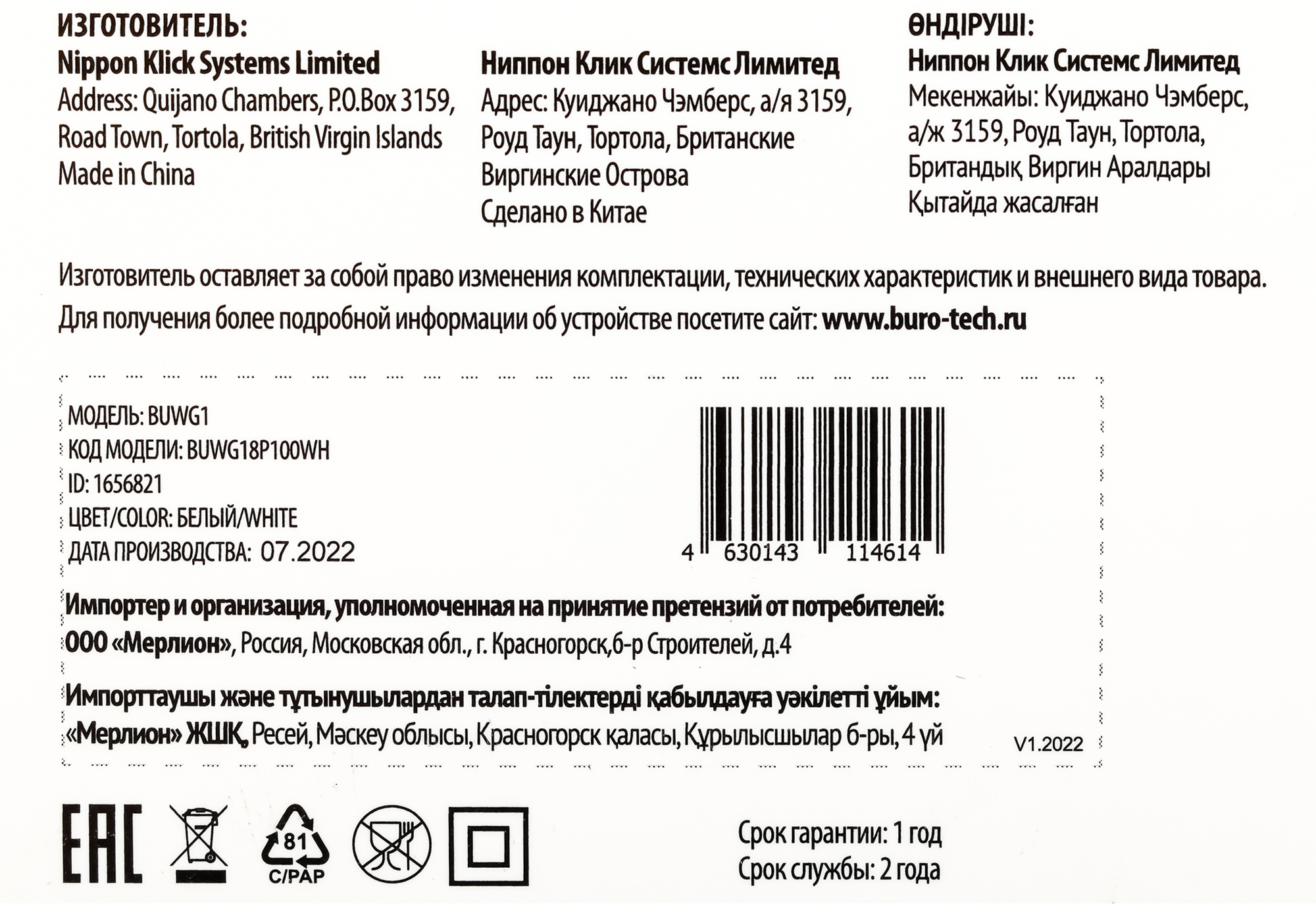 PartNumber/Артикул Производителя BUWG18P100WH