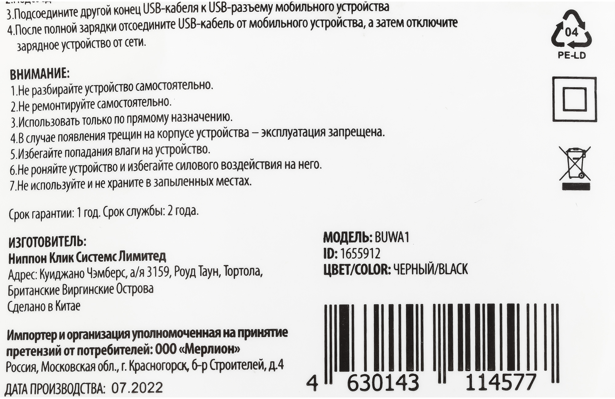 PartNumber/Артикул Производителя BUWA10S100BK
