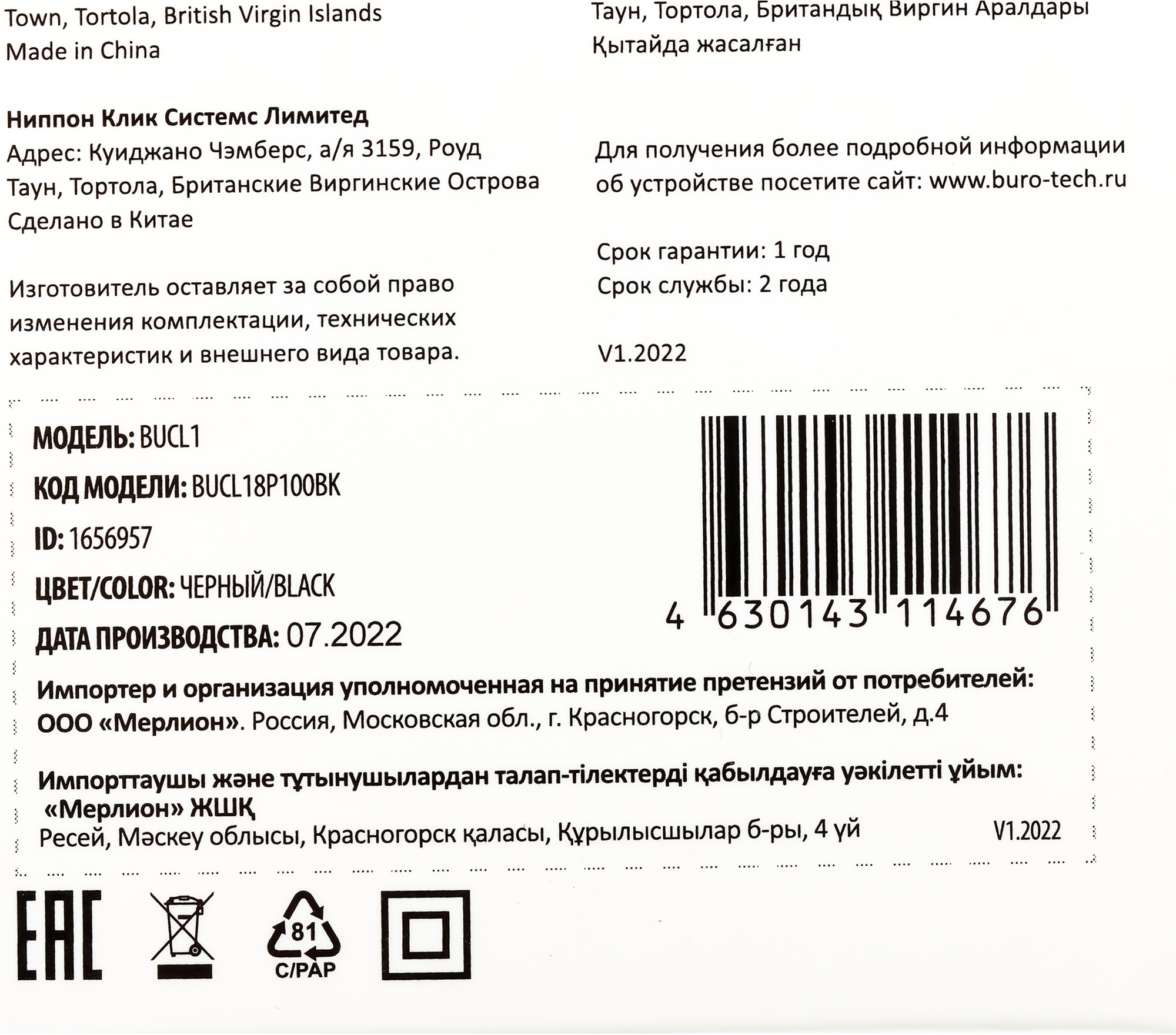 PartNumber/Артикул Производителя BUCL18P100BK