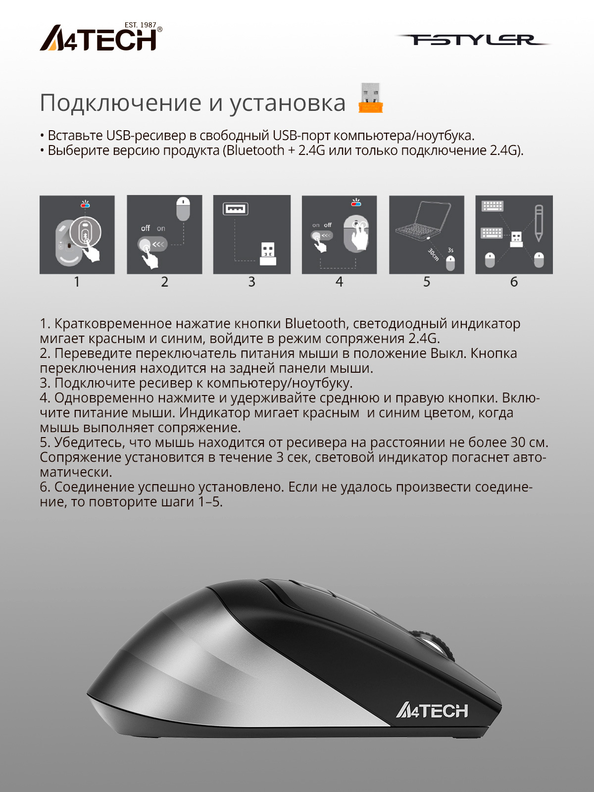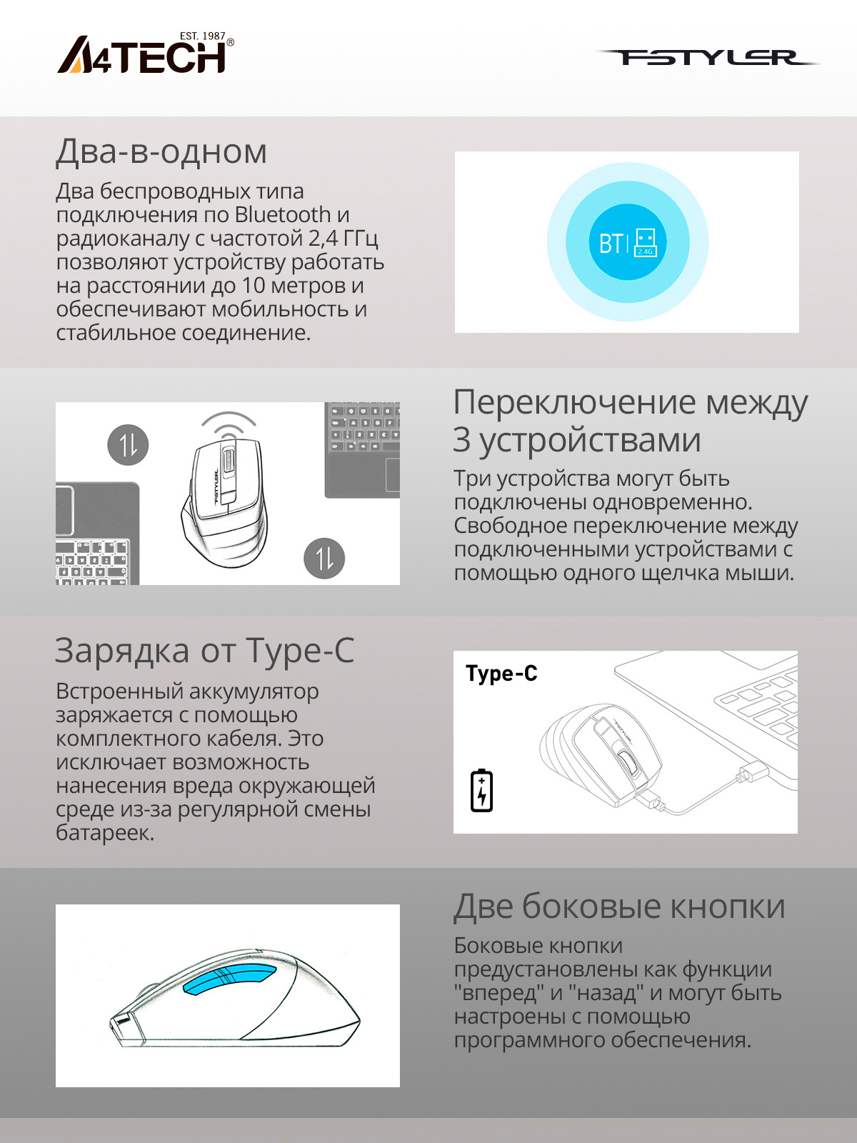 | Тип беспроводного соединения мыши | Bluetooth/Радио | |
