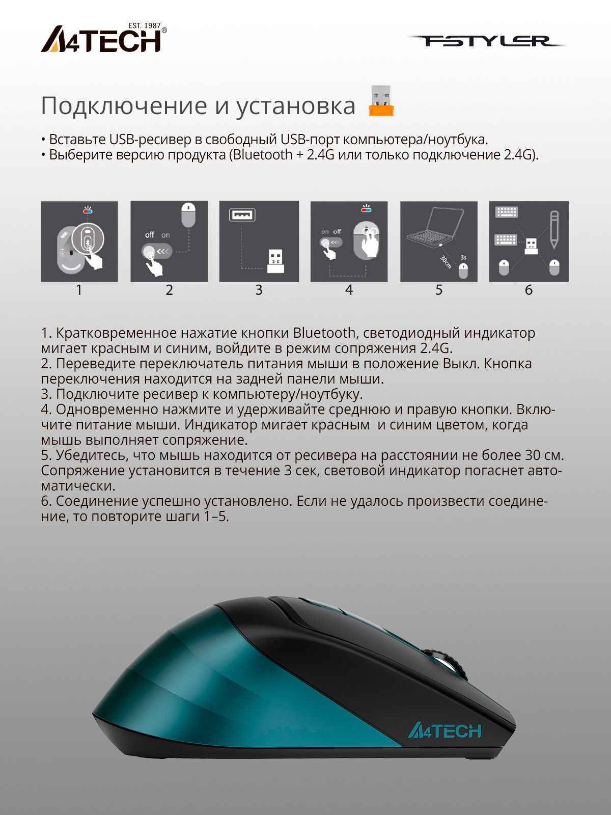 | Тип беспроводного соединения мыши | Bluetooth/Радио | |