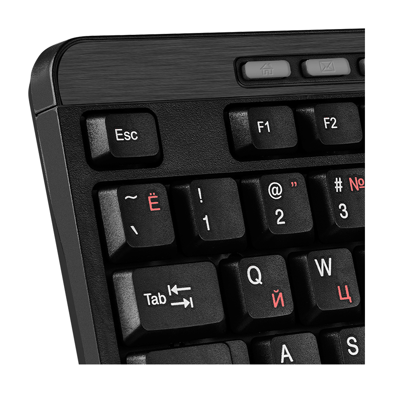Клавиатура имеет стандартную раскладку, любимый многими «двухэтажный» Enter и девять клавиш быстрого доступа к различным функциям. Корпус у нее компактный, но это тот случай, когда компактность не требует жертв. Все на месте, включая цифровую клавиатуру, без которой не мыслят работы люди, деятельность которых связана с многочисленными вычислениями. Обозначения на клавиши нанесены хорошо читаемой краской, русские буквы выделены цветом — в каждой детали клавиатуры заметна забота об удобстве пользователя.