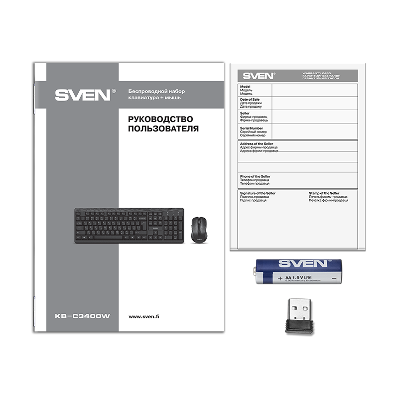 Компания SVEN представила набор из клавиатуры и компьютерной мыши, позволяющий получить два компактных и надежных устройства, способных стать отличным дополнением любого рабочего места. Беспроводной ресивер у комплекта общий и займет всего один порт USB. Размеры приемника крайне невелики — если вы решите использовать KB-C3400W вместе с ноутбуком, его не придется вынимать при переноске.