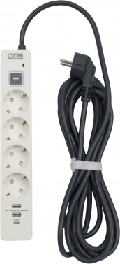 Сетевой фильтр Powercom SP-01 USB2A1CW 3,0М 3.0м (4 розетки) белый/серый