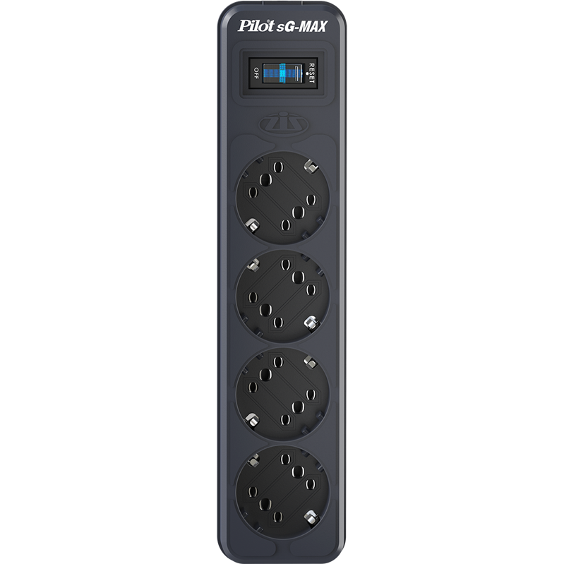 Сетевой фильтр Pilot sG-MAX снабжен защитой от импульсных помех и грозового разряда, имеет защиту от перегрузки, тока короткого замыкания и критического повышения температуры внутри корпуса.