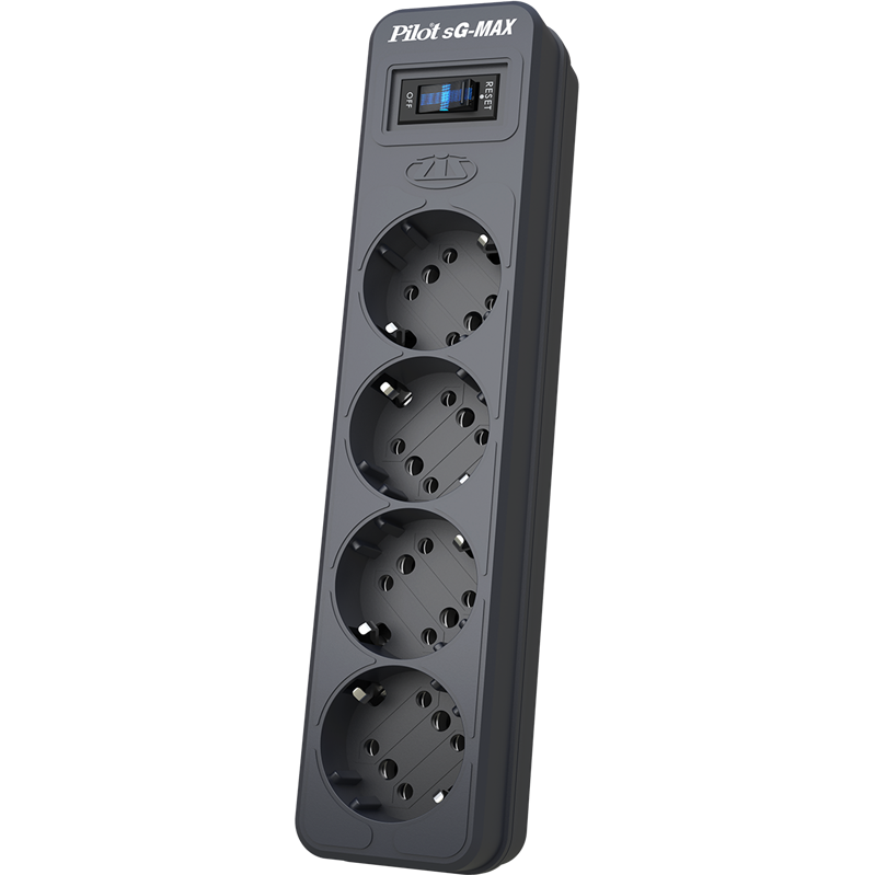 Сетевой фильтр Pilot sG-MAX снабжен защитой от импульсных помех и грозового разряда, имеет защиту от перегрузки, тока короткого замыкания и критического повышения температуры внутри корпуса.