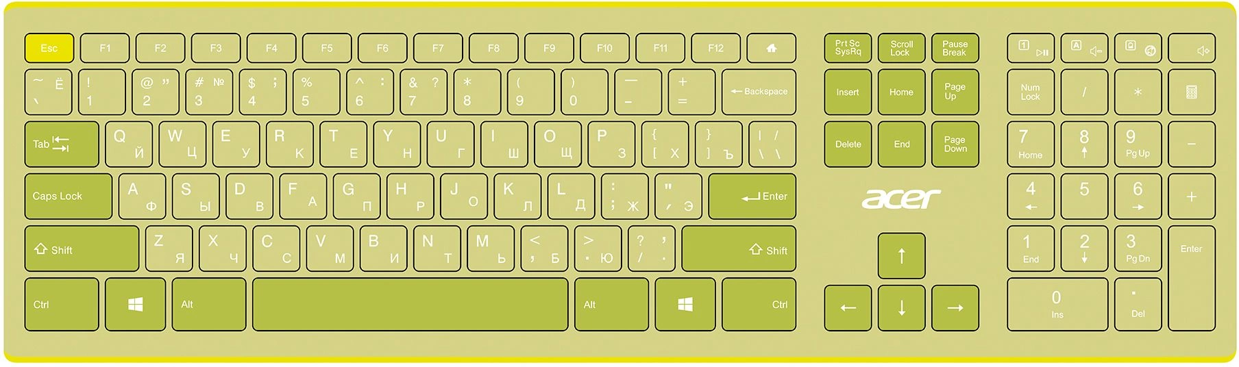 Цвет клавиатуры зеленый/желтый