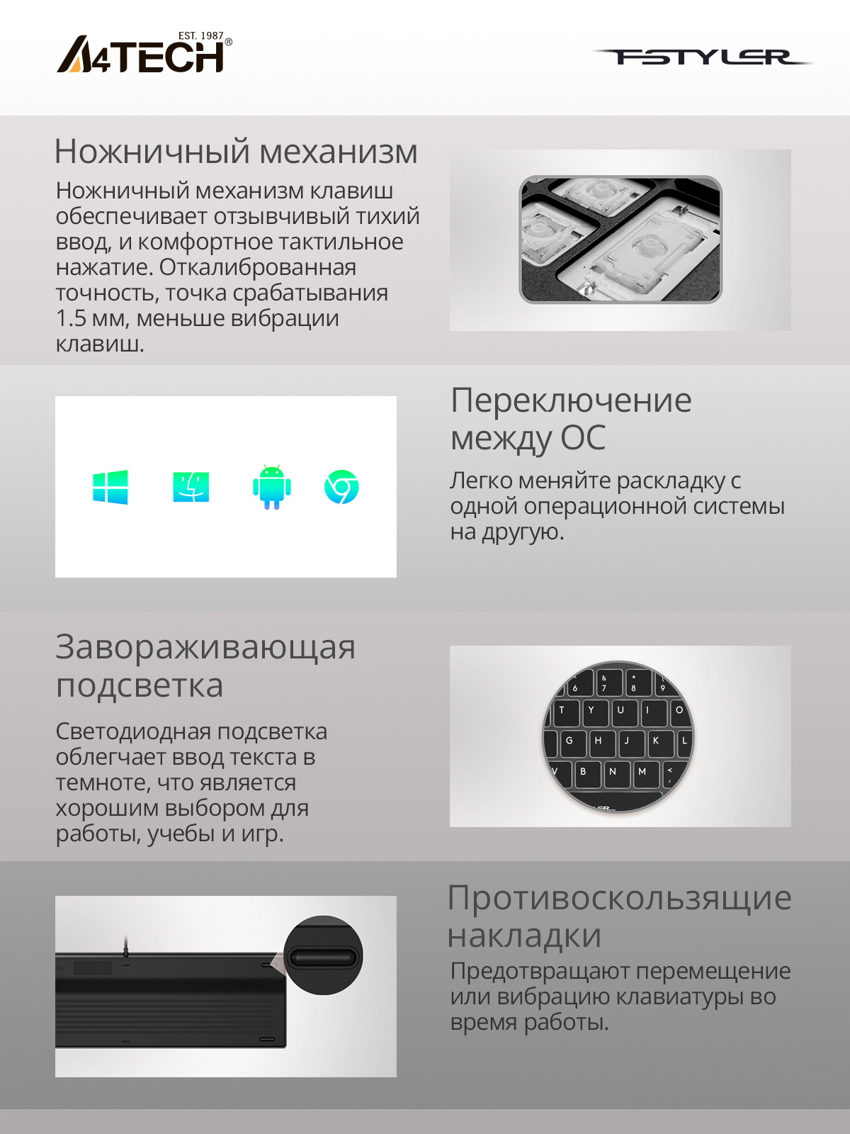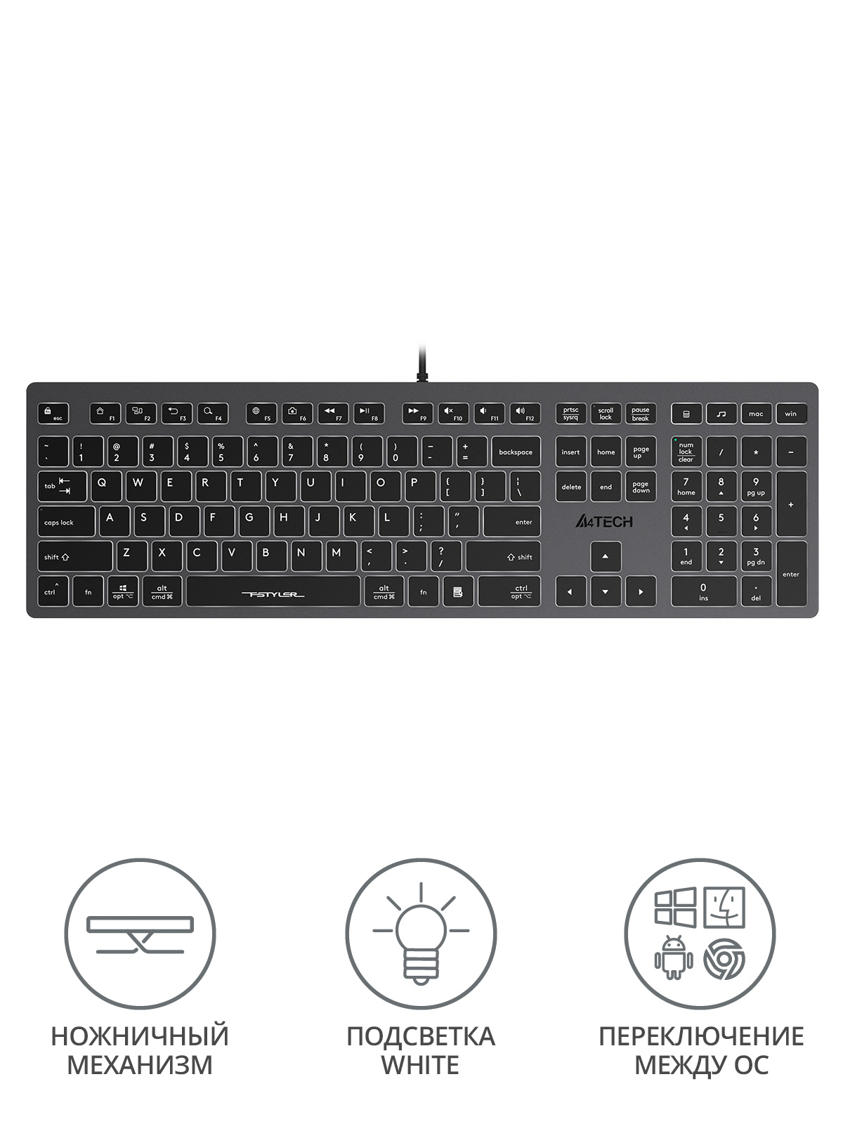 | Особенности | ножничный механизм нажатия клавиш | |