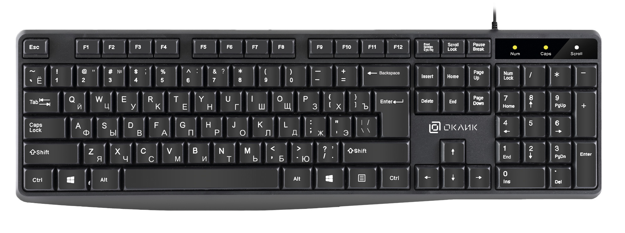 | Особенности | Ресурс нажатий:10 000 000/ Anti-ghosting до 26 одновременных нажатий.Влагозащитный корпус.Автоматическая конфигурация без специальных драйверов. | |