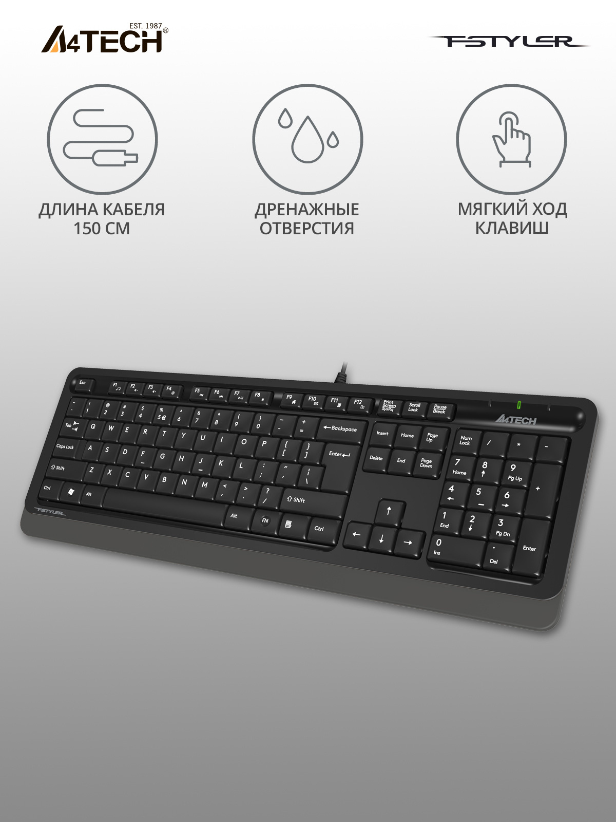 | Особенности | Эргономичная форма клавиш минимизирует чувство усталости при длительной работе и увеличивает точность набора текста. | |