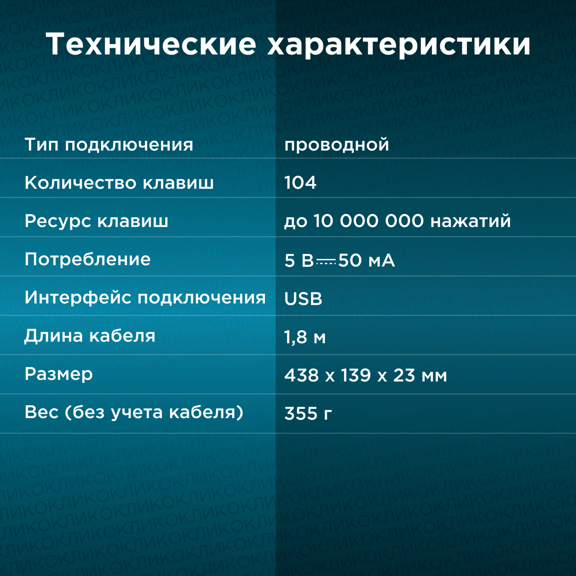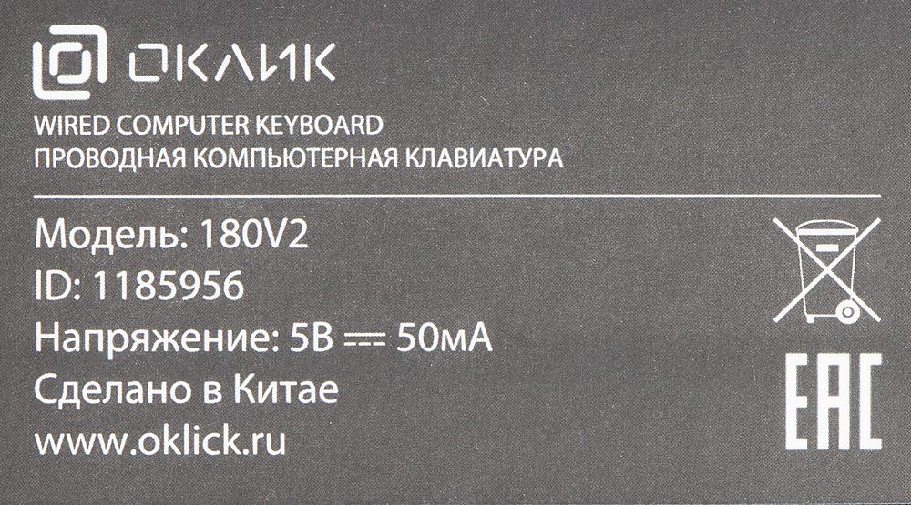 | Особенности | Универсальная офисная клавиатура с длинным кабелем 1,8 м | |