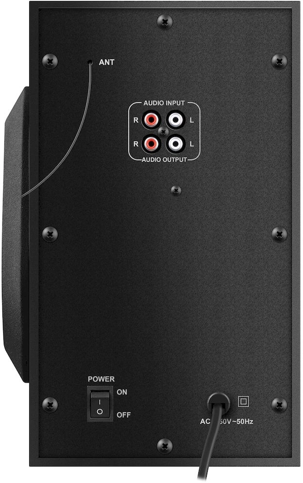 | Особенности | Мощная система 2.1 в деревянном корпусе. Bluetooth 5.3. Информационный дисплей на сабвуфере. Беспроводной пульт ДУ. Встроенный FM-приемник. Поддерживает USB накопители. Встроенный MP3-плеер. AUX-аудиовход. Подсветка сабвуфера. Эквалайзер | |
