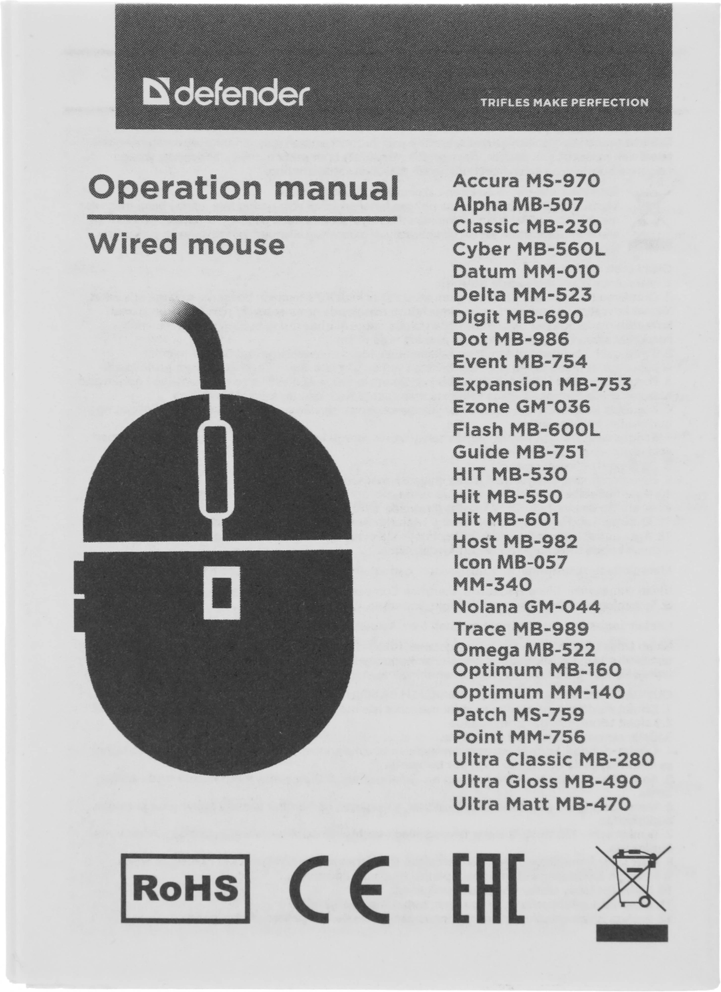 | Комплект поставки | Компьютерная мышь, инструкция с гарантийным талоном. | |