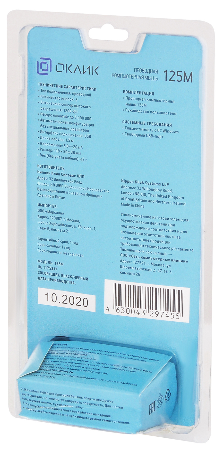 Комплект поставки Проводная компьютерная мышь 125M