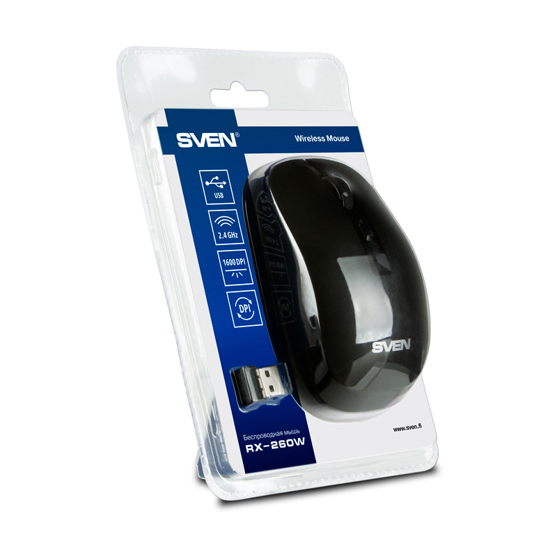 Мышь RX-260W от компании SVEN собрала в себе все самое необходимое для работы и даже немного больше. Первое, о чем стоит сказать — это беспроводное подключение. Как бы там ни было, а работать без проводов намного удобнее. Устройство очень компактное, его можно всегда взять с собой — любители поработать за ноутбуком наверняка оценят эту возможность. Кольцо прокрутки прорезинено, чтобы обеспечить максимальный уровень