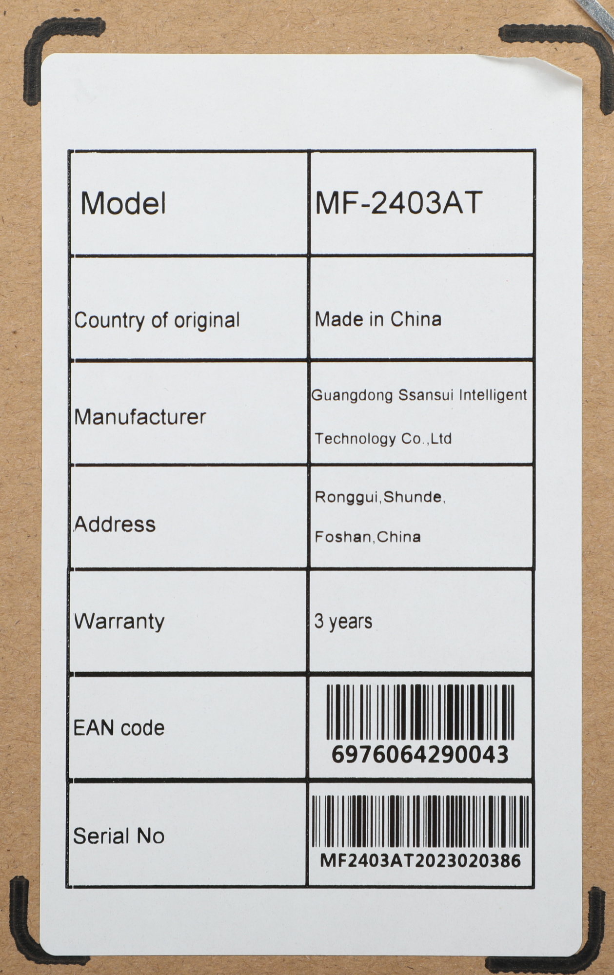 | PartNumber/Артикул Производителя | MF-2403AT | |