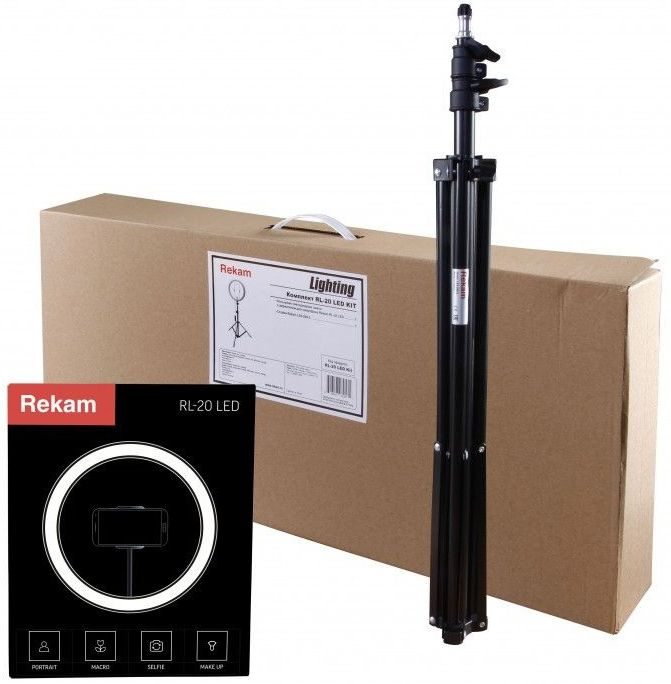| Комплектация | Кольцевая светодиодная лампа. Шнур питания с пультом и USB-разъёмом. Держатель для смартфона. Гибкое шарнирное крепление (Goose neck). Крепление на стойку (штатив) с интегрированной шаровой головой.. Винт регулировки угла наклона лампы. Студийная стойка REKAM LS3?200?2 (75-200 см). Инструкция. | |